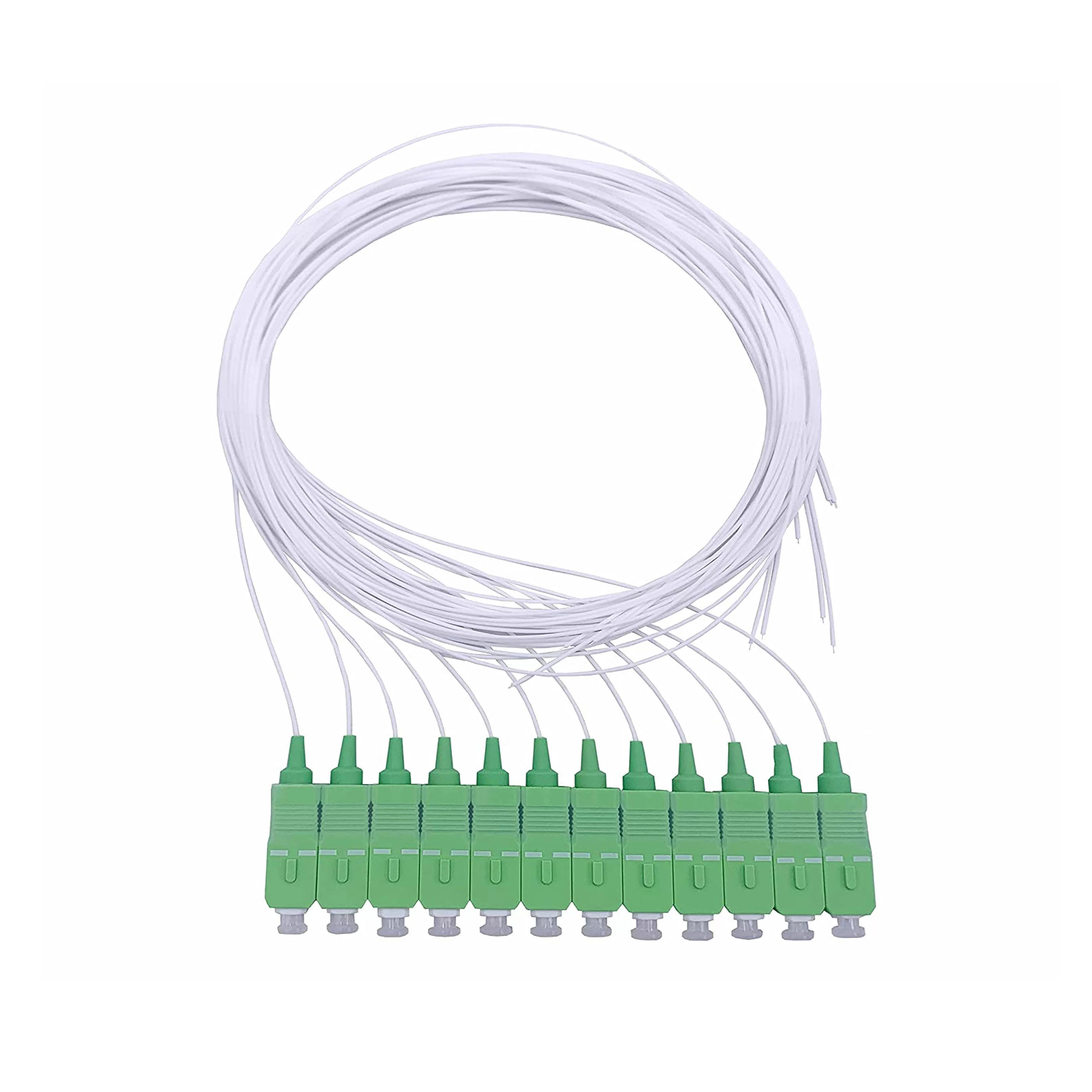 Fiber optik pigtail, bir ucunda fabrika tarafından takılan bir konektörle sonlandırılmış diğer ucu ise sonlandırılmamış olarak bırakılan fiber optik kablodur. Bu nedenle, konektör tarafı ekipmana ve diğer taraf fiber optik kablolarla eklenebilir. Fiber optik pigtail, fiber optik kabloları füzyon veya mekanik ekleme yoluyla sonlandırmak için kullanılır. Yüksek kaliteli pigtail kablolar, doğru füzyon ekleme uygulamaları ile birleştiğinde fiber optik kablo sonlandırmaları için mümkün olan en iyi performansı sunar. Fiber optik pigtailler genellikle ODF, fiber terminal kutusu, Fiber optik patch panel ve dağıtım kutusu gibi fiber optik yönetim ekipmanlarında kullanılır.